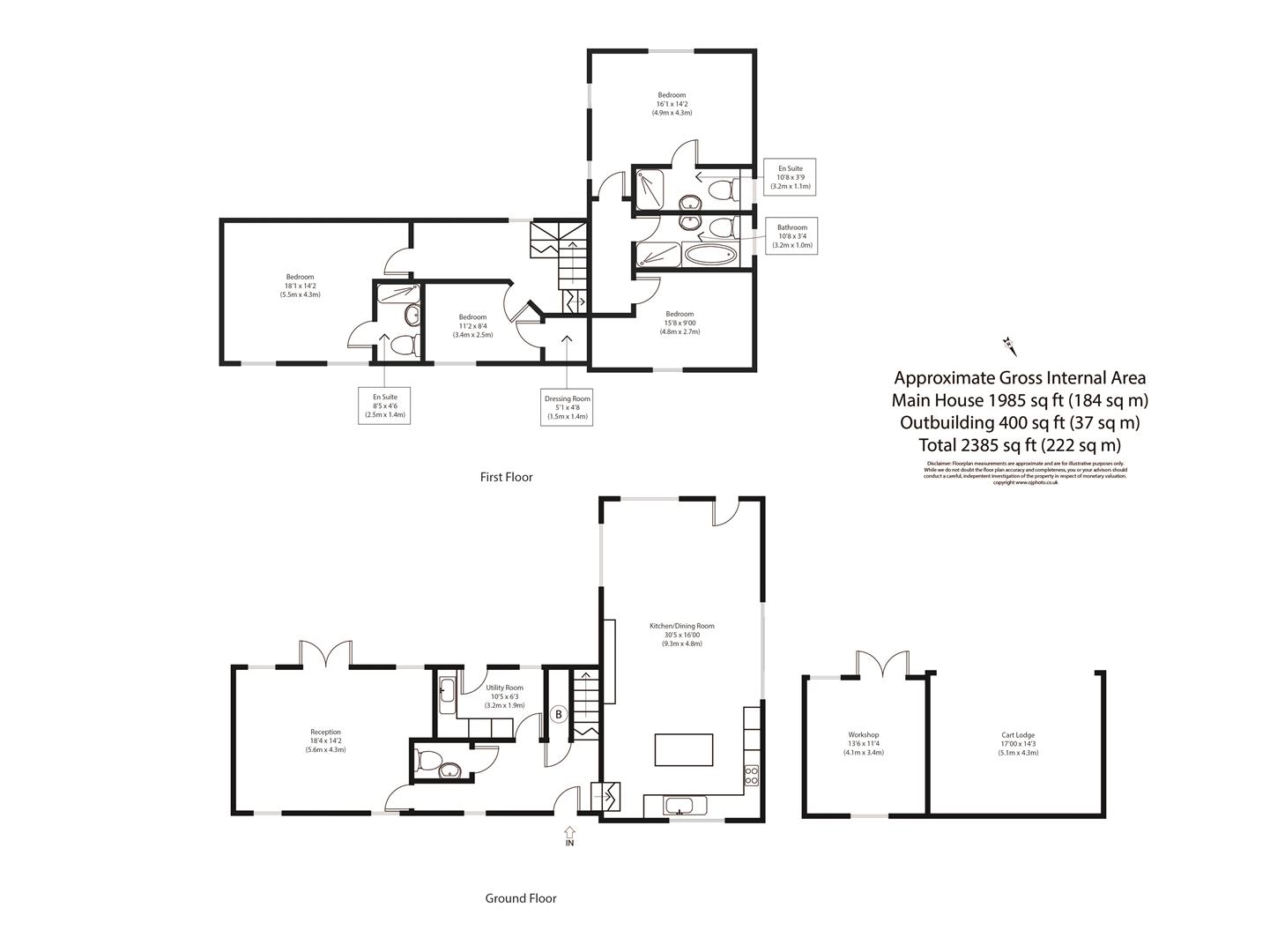 Outside, to the front, the property is approached via a private track leading to electric gates and an extensive driveway, providing ample off road parking and leading to a cart lodge and workshop, with power and light connected. There is side access leading to the rear gardens, which are set on two levels with a large paved seating area, numerous mature trees and shrubs, backing onto woodland and offering far reaching countryside views.